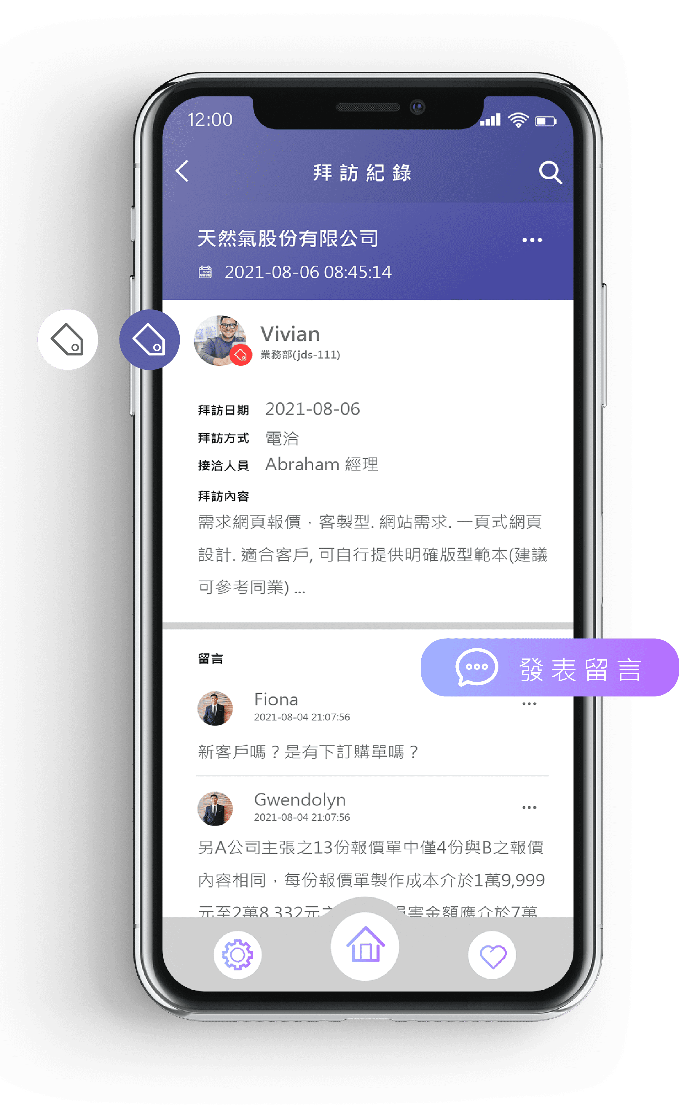 不怕業務離職流失客戶,所有客戶輕鬆交接,包含歷史拜訪紀錄,及長官承諾給協同單位協調事宜