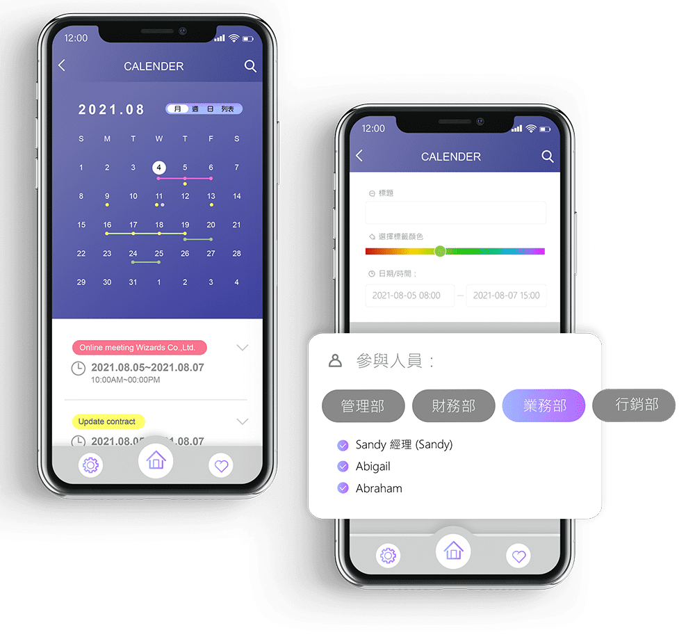 有效利用行事曆,管理人員的時間安排,如提醒會議時間、工作討論、參訪、協調..等等內容,可選擇同步出現所選擇相關人員,非技術人員也能輕鬆上手、且上手後可以明顯提升團隊效率的重要工具。 個人也能 註記重要事項,前一天會推播提醒,會議前 30分鐘會再次提醒,不輕易錯過每一場會議時間,有效提醒工作效率。